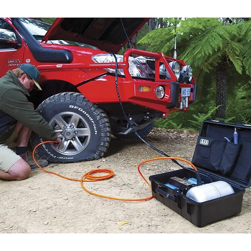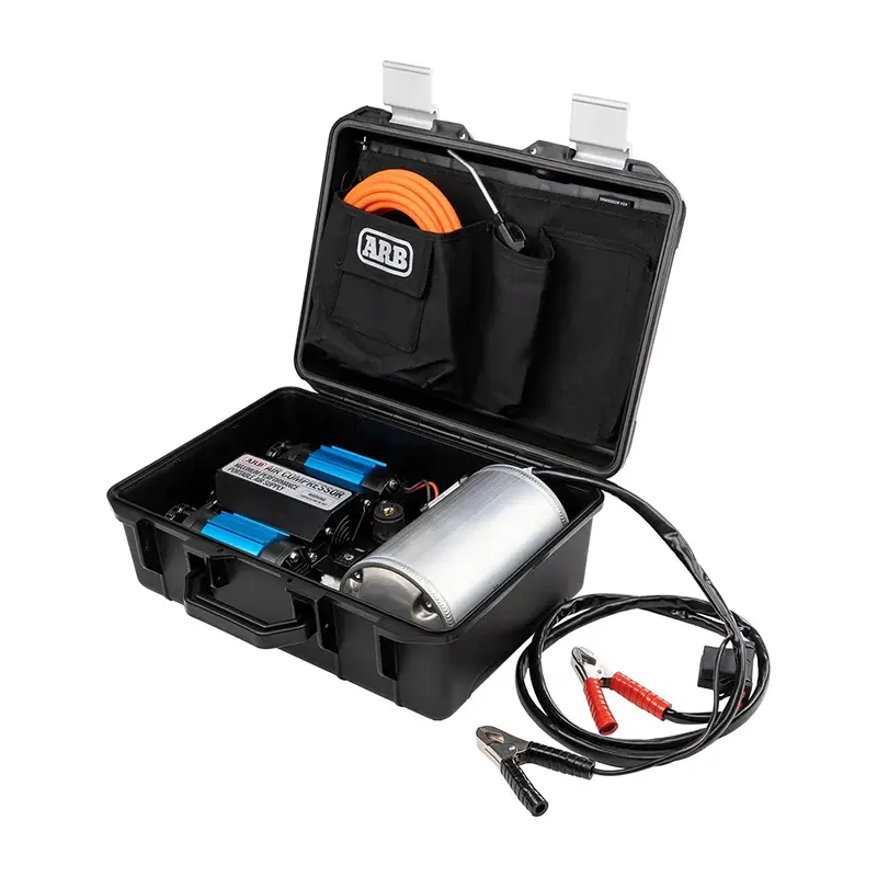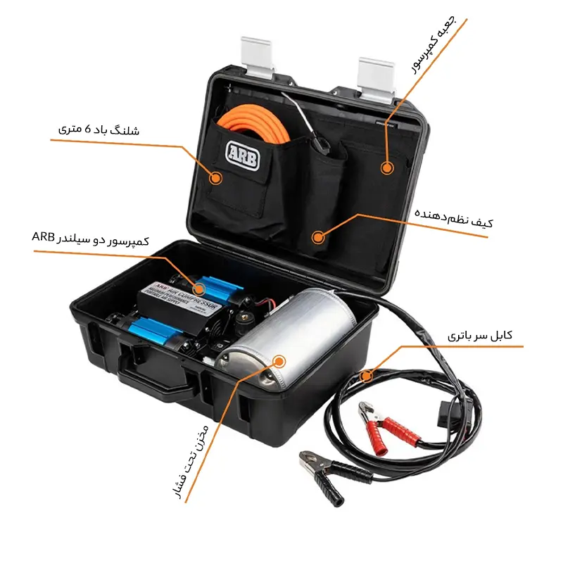 کمپرسور باد ۱۷۴ لیتری دو سیلندر ARB یک راهکار کامل و حرفهای برای مدیریت باد تایر و تجهیزات بادی در آفرود، کمپینگ و طبیعتگردی است. این کمپرسور با دبی هوای بسیار بالا، مخزن تحت فشار و هارد کیس مقاوم، امکان استفاده سریع، ایمن و بدون افت عملکرد را در شرایط سخت کویر و مسیرهای آفرودی فراهم میکند.