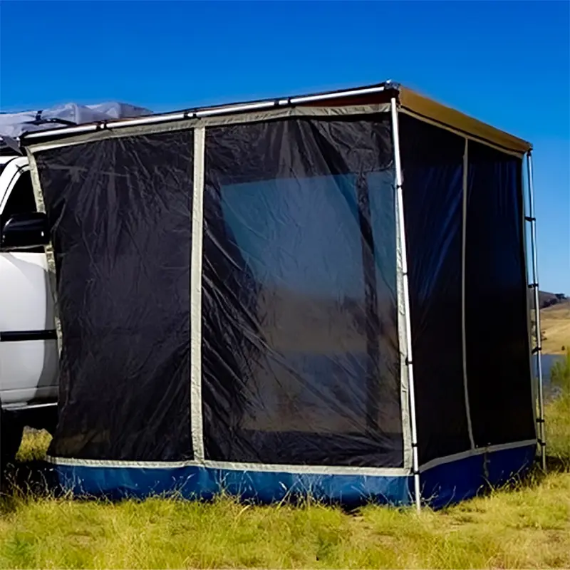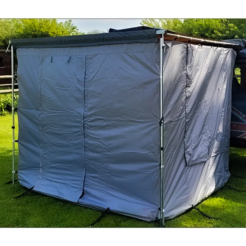 یک جیب داخلی برای وسایل دمدست، درز زیپی مخصوص عبور کابل برق برای تغذیهی روشنایی یا شارژ، و دسترسی مستقیم به داخل اتاق از طریق بازکردن درِ خودرو در نظر گرفته شده تا جابهجایی تجهیزات بدون رفتوآمد اضافی انجام شود. این یعنی اتاقک میتواند بهراحتی نقش آشپزخانهی کمپ، نشیمن بارانی یا فضای تعویض لباسِ امن را بازی کند.