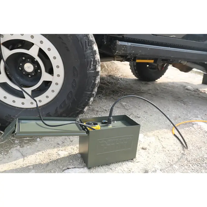 اتصال کمپرسور هوای تیمکس از نوع فندکی است که نصب و راهاندازی آن را بسیار ساده میکند. شما میتوانید این کمپرسور جعبهای را به منبع برق خودرو خود وصل کرده و بهراحتی از آن در هر مکانی استفاده کنید. این ویژگی بسیار مهم است، زیرا این پمپ باد جعبهای را به یک وسیله قابلحمل تبدیل میکند که در سفرها و کمپینگ نیاز شما را برطرف خواهد کرد.