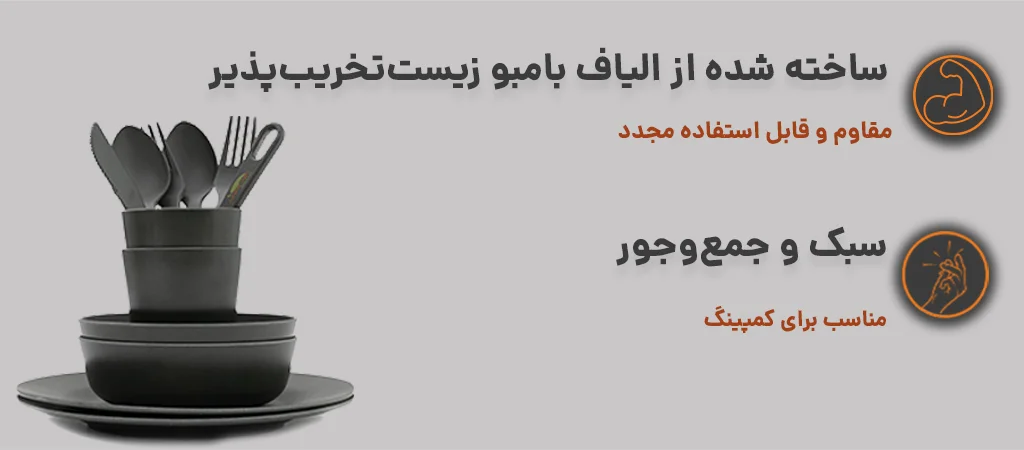 برخلاف ظروف پلاستیکی یا چینی سنگین، این ست از الیاف بامبو زیستتخریبپذیر ساخته شده و هم دوستدار محیطزیست است و هم قابل استفاده مجدد می باشد. مقاومت بالای آن باعث میشود در سفرهای طولانی و مسیرهای ناهموار، بدون نگرانی از شکستگی یا آسیب دیدن، بتوانید از آن استفاده کنید. علاوه بر این، بافت طبیعی و رنگ زیبا تجربه غذا خوردن در طبیعت را لذتبخشتر میکند و نگهداری و شستوشوی آن در ماشین ظرفشویی بسیار آسان است.