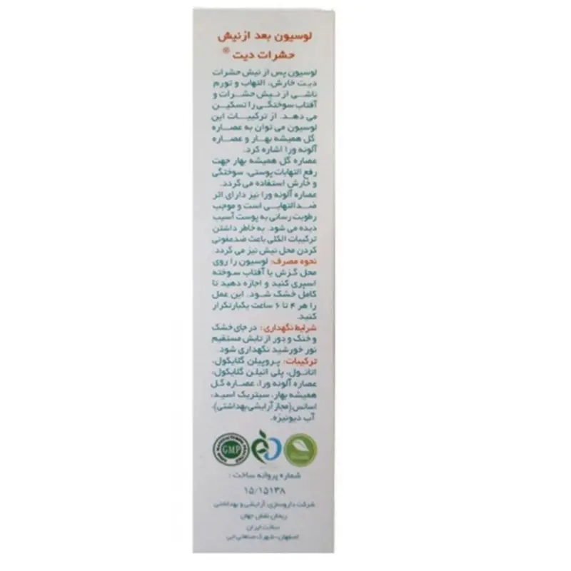 اسپری پس از گزش حشرات دیت (Deet) 54 گرم ، محصولی کار آمد به منظور تسکین تورم و التهاب نیش حشرات و آفتاب سوختگی می باشد.