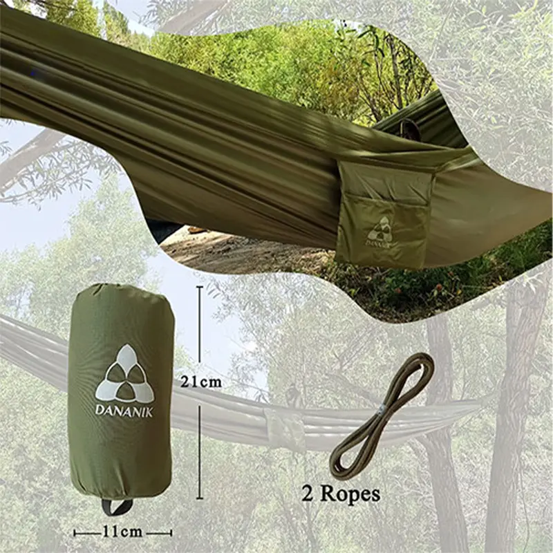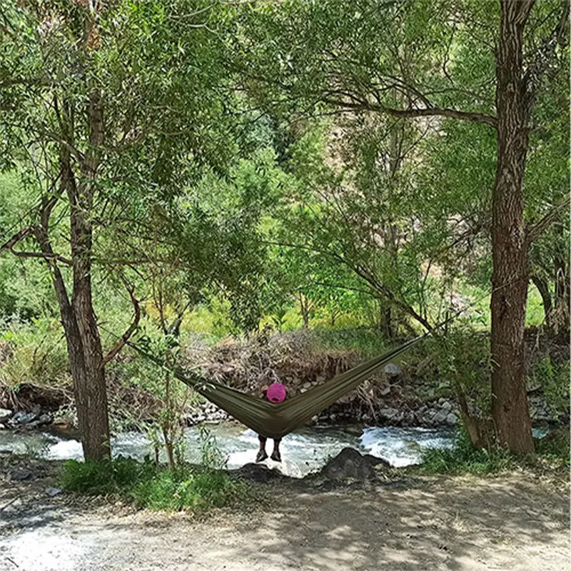 در مسافرتها خواب راحت بسیار مهم میباشد. تختآویز دونفره ریپاستاپ این امکان را فراهم کرده تا در کمپینگ و مسافرتهای خود بتوانید بهراحتی استراحت کرده و با سرحال و با نشاط به مسیر ادامه دهید. جنس تختآویز دونفره از پلیاستر ریپاستاپ است و پس از قرارگیری در آن، تا حدودی طول و عرض ننو زیاد میشود. از ویژگیهای مهم استفاده از این تختآویز، در امان ماندن از آسیب و نیش حشرات و حیوانات روی زمین است.
