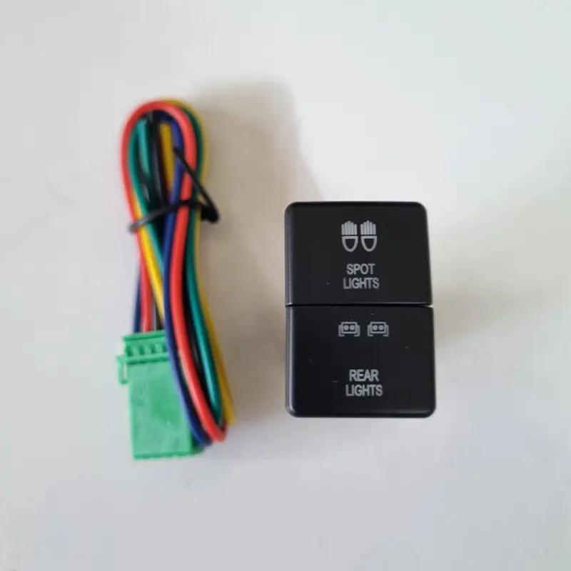 کلید پروژکتور فشاری دو پل روو طرح Spot Lights – Rear Lights یکی از کاربردیترینها برای خودروهای آفرودی و مجهز به سیستم نورپردازی جانبی است که به راننده امکان کنترل مجزا و همزمان دو نوع نور را میدهد.