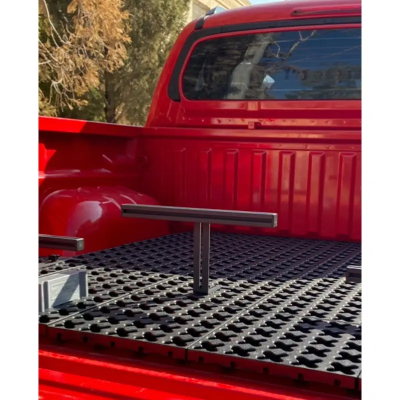 اما این فقط آغاز ماجراست. همراه این کفپوش‌ها، دو عدد هولدر ثابت و دو عدد هولدر قابل‌تنظیم نیز در بسته‌بندی وجود دارد؛ ابزاری که با کمک آن‌ها می‌توان گالن، بیل، تبر، پایه چادر یا هر نوع وسیله بلند را به‌شکل کاملاً امن روی کفپوش ثابت کرد. این هولدرها با پایه‌های فلزی و پیچ خروسکی عرضه می‌شوند تا کاربر بدون نیاز به ابزار اضافی، بتواند محل نصب را به‌دلخواه تغییر دهد یا تثبیت کند.