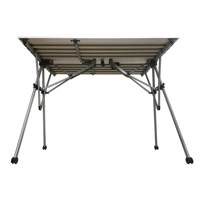 پایههای میز جمعشونده و رویه میز نوارهای آلومینیومی تاشو است. نیمکتها دارای بستهای محکم فلزی و با ظرفیت تحمل وزن سه نفر هستند. باز و بستهکردن این میز و نیمکت بهراحتی و در طی چند دقیقه انجامپذیر است.