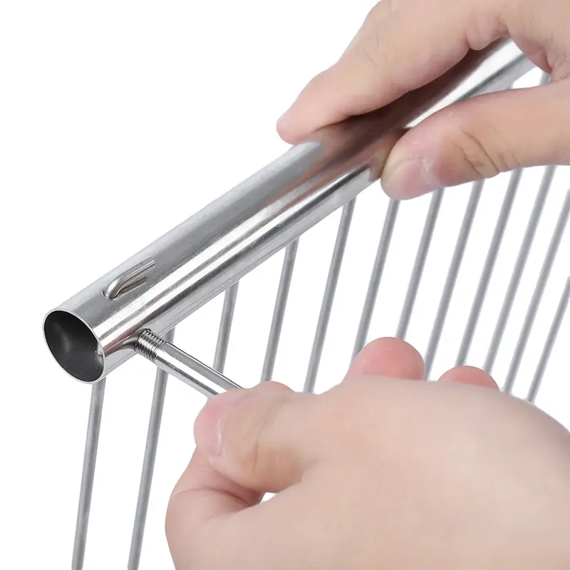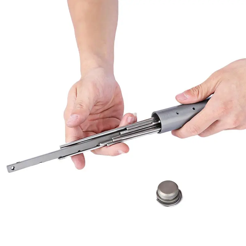 این وسیله از استیل ضدزنگ ساخته شده است. در حالیکه پس از جمعشدن به شکل یک لوله به طول 31 سانتیمتر و قطر 2.5 سانتیمتر درمیآید، ابعاد منقلِ بازشده 28 در 27 سانتیمتر با ارتفاع 15 سانتیمتر است و میتوان بر روی آن انواع مواد غذایی را گریل یا کباب کرد یا حتی کتری و قابلمههای سفری را بر روی آن قرار داد.