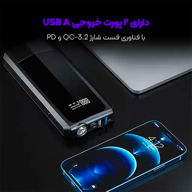 طراحی این محصول با در نظر گرفتن استفادهی چندمنظوره انجام شده و شامل پورتهای متنوعی برای شارژ دستگاههای الکترونیکی است. دو پورت USB-A با پشتیبانی از فناوری Quick Charge 3.0 و یک پورت USB-C با قابلیت Power Delivery 18 وات، امکان شارژ سریع انواع گوشی موبایل، تبلت، پاوربانک و حتی برخی لپتاپها را فراهم میکنند. این قابلیتها، جامپ استارتر پاورلوژی را به یک پاوربانک همهکاره نیز تبدیل کرده که میتواند در طول سفر یا قطعی برق، نقش منبع تغذیهی همراه را ایفا کند.