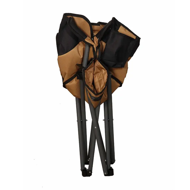 پارچهی نشیمن از متریال درجهیک انتخاب میشود و با دوختهای تقویتی در نقاط پرتنش، فرم و استحکام خود را در استفادهی مداوم حفظ میکند. لبهها با مغزیدوزی مرتب جمع میشوند تا در بازوبستههای مکرر ریشریش نشوند و ظاهر صندلی تمیز بماند. روی یکی از دستهها جایلیوان یکپارچه تعبیه میشود تا بطری یا ماگ همیشه در دسترس باشد و جیب بغل نیز نظم مناسبی برای موبایل، چراغقوه یا ابزارهای کوچک فراهم میکند.