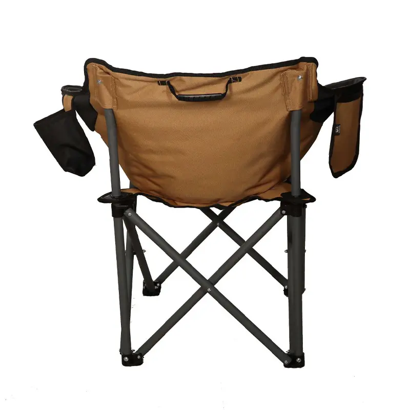 زیرِ این راحتی، یک سازهی مطمئن قرار میگیرد: شاسی از لولههای فلزی ۲۰ میلیمتری با پوشش الکترواستاتیک ضدخش ساخته میشود تا در برابر سایش و رطوبت دوام بیاورد. آرایش ضربدری (X-Frame)، نیرو را یکنواخت به پایهها منتقل میکند و همراه با مفاصل تقویتشده، تحمل وزن تا ۱۴۰ کیلوگرم را ممکن میکند. کفشکهای انتهاییِ پایهها، چسبندگی مناسبی روی خاک، چمن یا کفپوش کمپ ایجاد میکنند و از خراش سطح زیرین جلوگیری میکنند.
