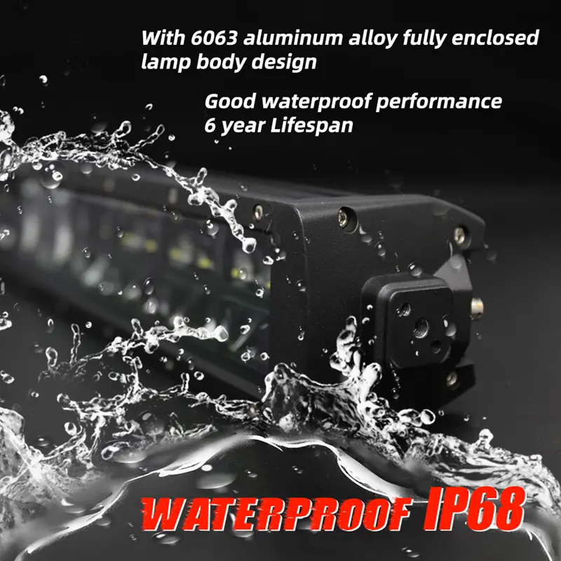 این لایت بار با درجه حفاظت IP68 عرضه میشود که نشاندهنده مقاومت کامل در برابر گردوغبار و قابلیت کارکرد در برابر نفوذ آب است. به این ترتیب حتی در عبور از رودخانههای کمعمق یا رانندگی در باران شدید، چراغ کارکرد مطمئن خود را حفظ میکند.