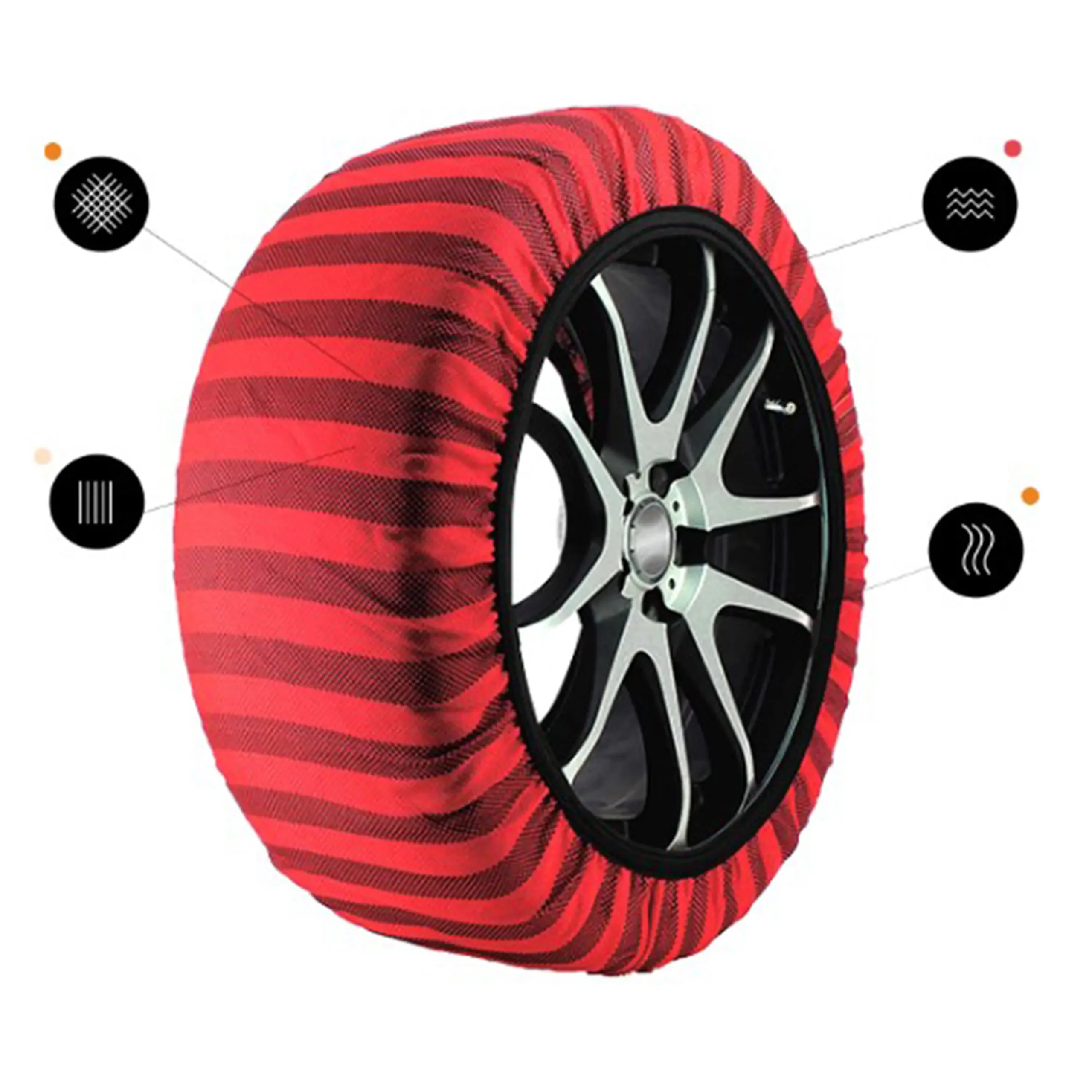 پارچه نانو با اصطکاک بالا باعث افزایش تماس مؤثر تایر با سطح برف و یخ میشود و از لغزش ناگهانی جلوگیری میکند. این ساختار بهگونهای طراحی شده که سطح تماس لاستیک را بهصورت کامل پوشش دهد تا چسبندگی یکنواختتری ایجاد شود.