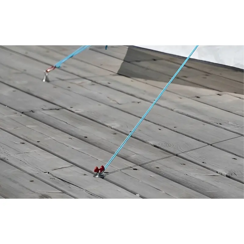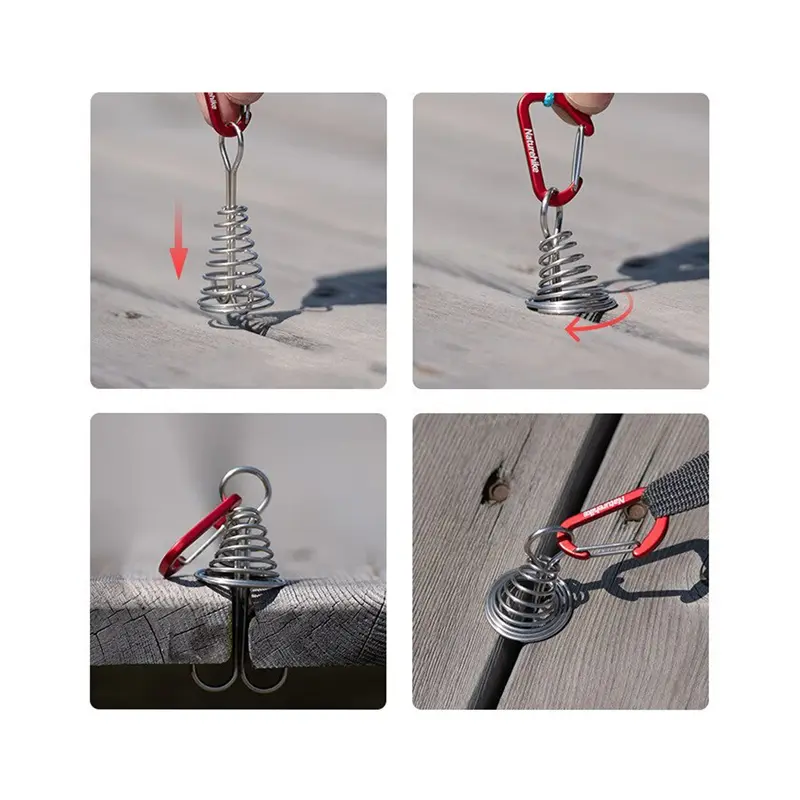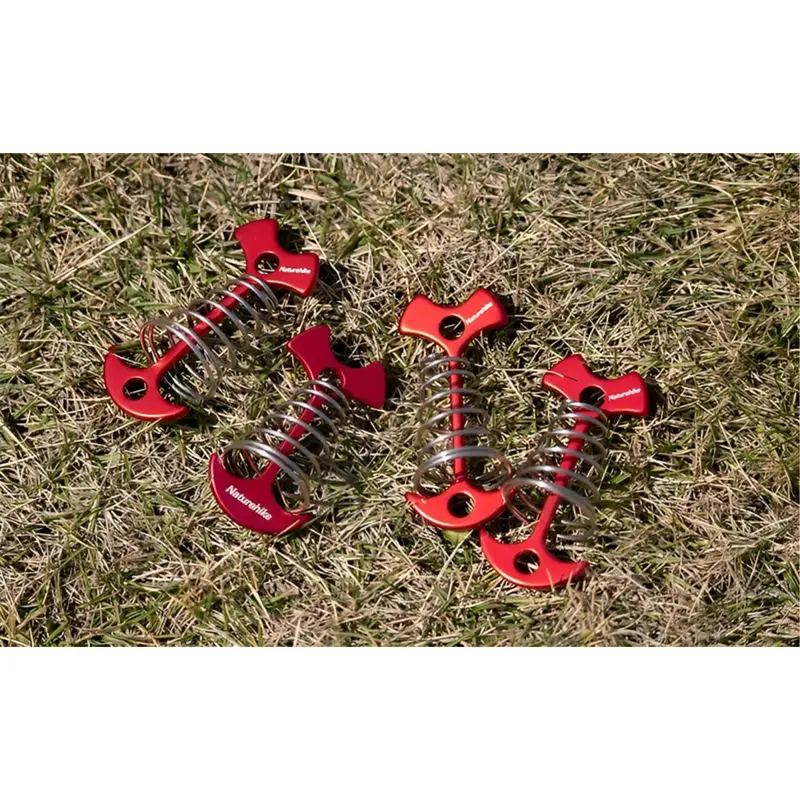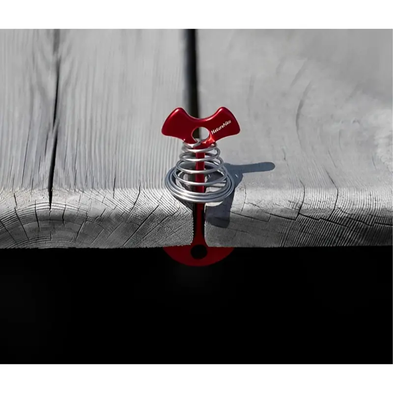 آلومینیوم به کار رفته در این میخ چادر ، ضد زنگ، سبک و قدرتمند می باشد. هر کدام از این میخ ها تنها 16 گرم وزن دارند و حمل آنها بسیار ساده است. فنر از استیل ضد زنگ ساخته شده و انعطاف خوبی دارد. کافی است میخ را وارد شیارهای نرده و چوب بکنید و بچرخانید تا مثل لنگر به آن گیر کند.