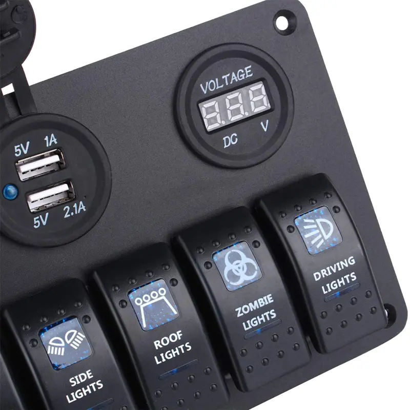 ولت‌متر دیجیتال قسمتی از این پنل است که وضعیت ولتاژ باتری خودرو را به‌طور دقیق نمایش می‌دهد. این ویژگی به شما کمک می‌کند تا از سلامت باتری خودرو مطمئن شوید و از مشکلات احتمالی جلوگیری کنید. این قابلیت به‌ویژه برای آفرودرها که از تجهیزات برقی متعددی استفاده می‌کنند، بسیار کاربردی است.