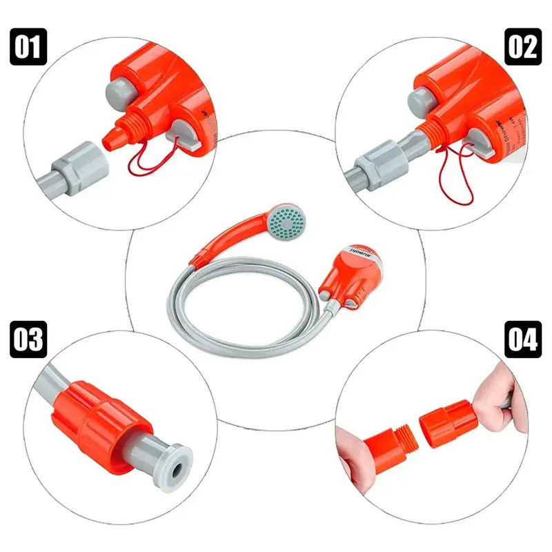با شیلنگی به طول ۱۷۵ سانتی‌متر، استفاده از این دوش هم در نزدیکی خودرو و هم داخل چادر یا فضای متحرک کاملاً ممکن است. رنگ نارنجی بدنه نیز در طبیعت به‌خوبی قابل‌مشاهده است و خطر گم‌شدن یا جاگذاشتن آن را کاهش می‌دهد.