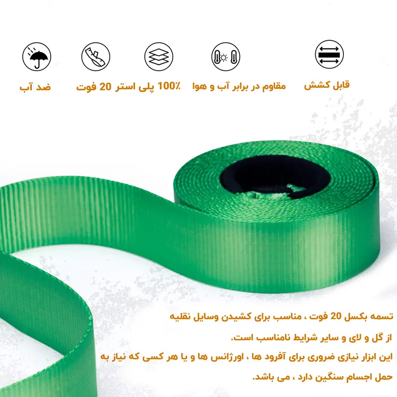 تسمه ارتجاعی ۶ متری ۳ اینچ بانکر از بهترین ابزارهای امدادونجات خودروهای دودیفرانسیل در صورت گیر افتادن ماشین در انواع شرایط نامساعد است. طراحی منحصربهفرد و هوشمندانه این تسمهها بهنحوی است که با کشآمدن تسمه، علاوه بر ایجاد نیروی مضاعف موردنیاز برای نجات خودروها، از وارد شدن آسیب به ماشین جلوگیری کرده و نهایتاً به متراژ اولیه خود بازمیگردد.