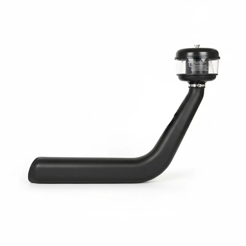 این مدل از هد اسنورکل از پلاستیک ABS باکیفیت ساخته شده که در برابر اشعه UV، ضربه و تغییرات دمایی بسیار مقاوم است. بخش بالایی این قطعه دارای سر فلزی بوده و اجزای محصول قابلیت باز شدن و شستوشو دارد. عملکرد داخلی آن شامل ایجاد جریان گردشی (Cyclone) است که ذرات معلق را به بیرون پرتاب کرده و فقط هوای پاک را وارد اسنورکل میکند. این سیستم Pre-Cleaner باعث میشود فیلتر هوا دیرتر کثیف شود، موتور بهتر تنفس کند و کارایی خودرو در مسیرهای دشوار حفظ شود.