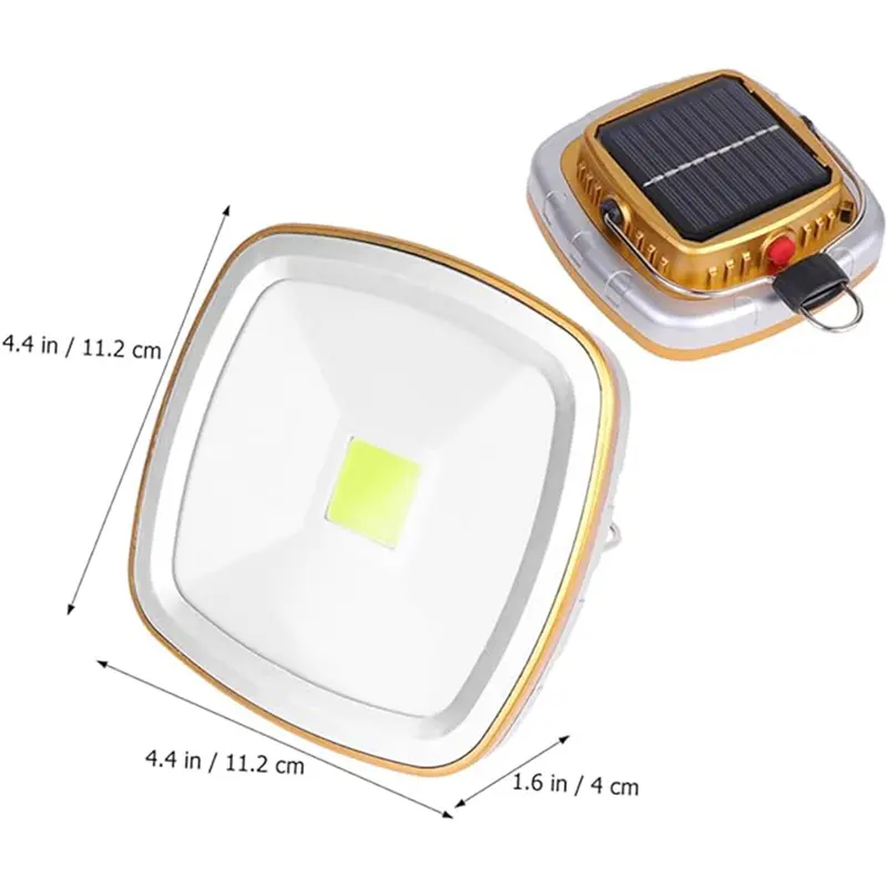 در قسمت بالای این چراغ کمپ Solar یک صفحه خورشیدی قرار داده شده است که با قرارگرفتن در برابر نور آفتاب یا روشنایی روز، طی ۸ ساعت بهطور کامل شارژ میشود. با توجه به دستگیرهای که برای این محصول طراحی شده، بهراحتی میتوانید آن را به سقف چادر، شاخه درخت یا هر مکانی که قابلیت آویزانکردن لامپ داشته باشد، آویزان کنید. لامپ بهکاررفته در این چراغ سقفی از نوع COB است و میتواند شعاعی بهاندازه ۴ تا ۵ متر مربع را روشن کند. بدنه ساختهشده این محصول ترکیبی از آلومینیوم و پلاستیک فشرده است که علاوه بر مقاومت بسیار بالا، کاملاً ضدآب نیز میباشد.