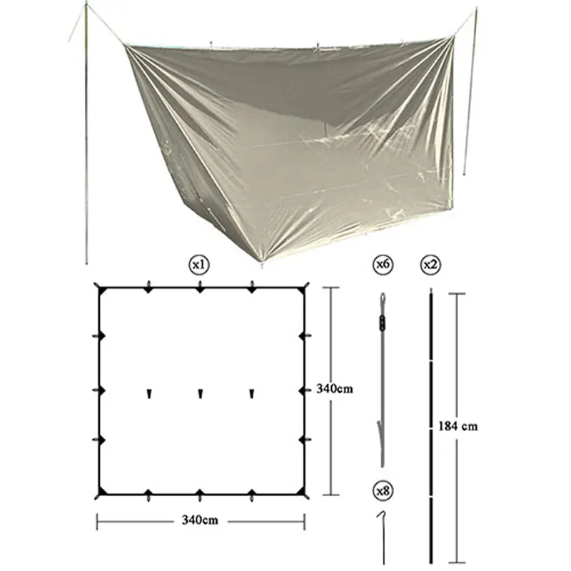سایبان کمپینگ پلیاستر تارپ مدل SB340 محصولی با حجم و وزن کم، برپایی آسان و کاربری فوقالعاده برای پیکنیک، مسافرت، طبیعتگردی و آفرود است.