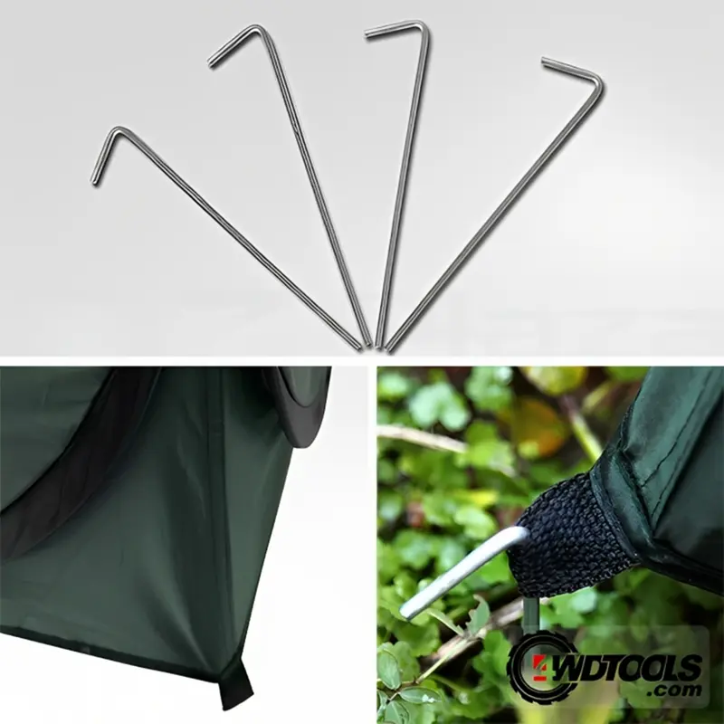 تمامی قلابها از جنس پلاستیک درجهیک هستند که در برابر نور خورشید و تغییرات دمایی مقاومت بیشتری دارند. ابعاد بزرگ چادر نسبت به نمونههای موجود در بازار امکان استفادهی همزمان دو نفر از چادر را میسر میکند. ارتفاع بالای سقف این چادر حمام، تعویض لباس را راحتتر کرده و امکان آویزانکردن دوش را فراهم میکند.