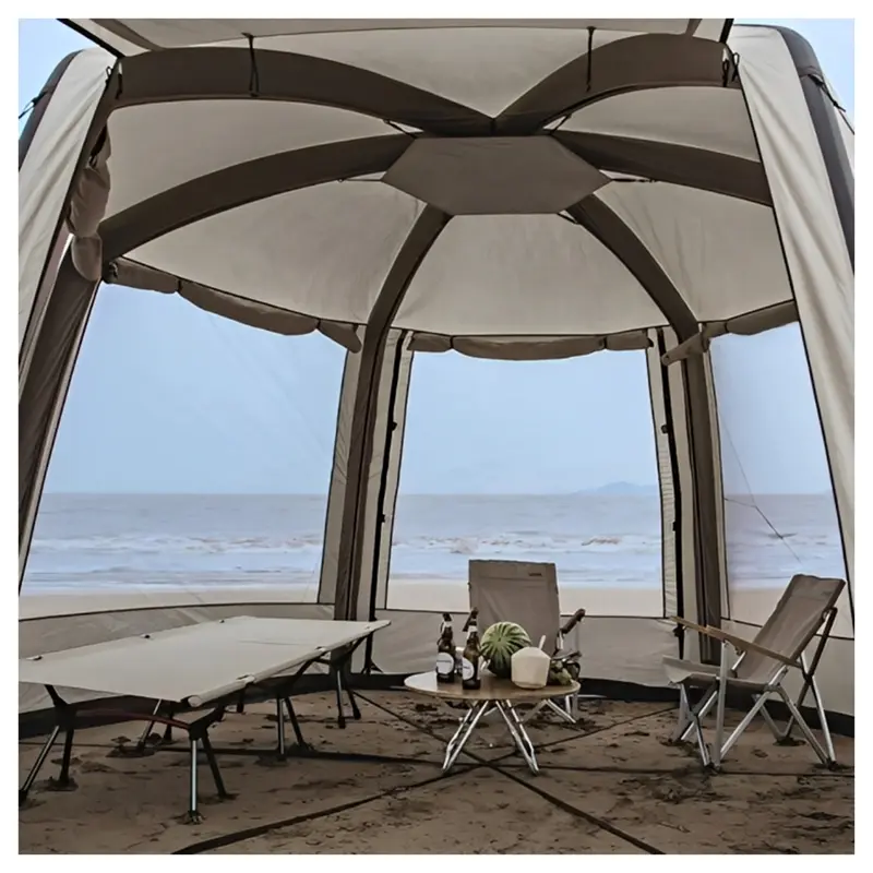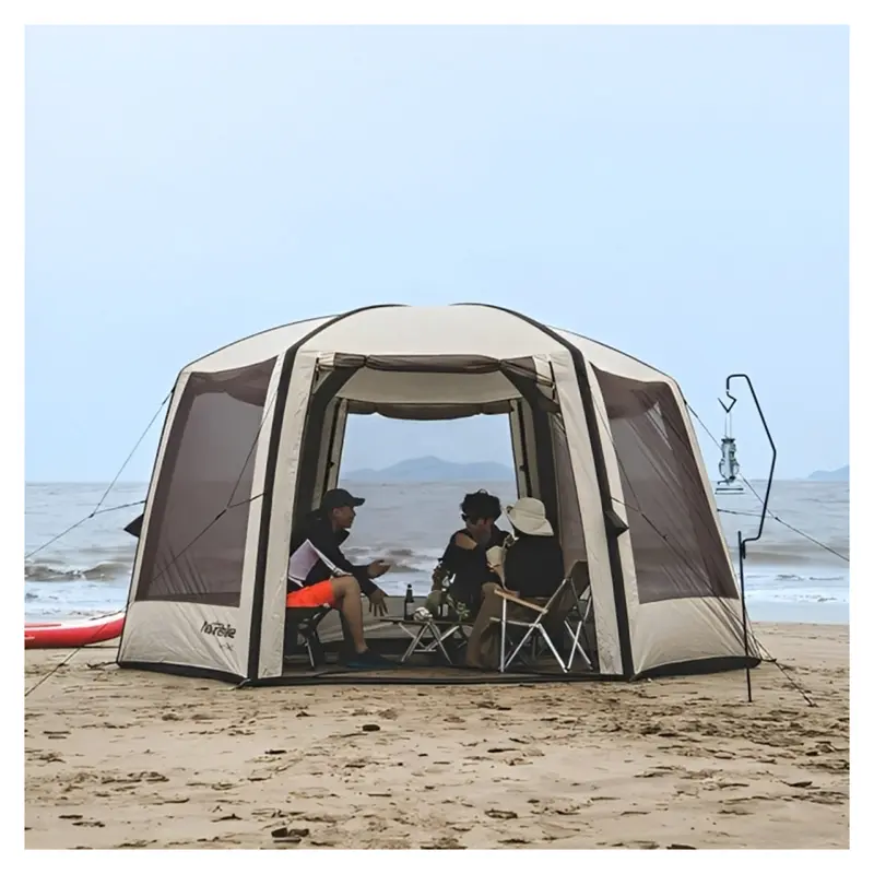 در هر شش ضلع چادر، پنجره های بزرگی وجود دارد که سبب می شوند چشم انداز 360 درجه داشته باشید. چادر شش ضلعی بزرگ نیچرهایک برای چند ساعت وقت گذراندن در طبیعت بسیار ایده آل است؛ میزان مقاومت چادر به آب PU 2000mm است و جلوی نور خورشید را نیز می گیرد.