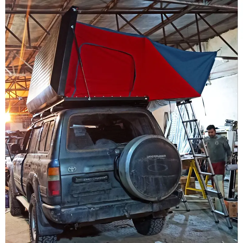 این چادر همراه با یک نردبان آلومینیومی تلسکوپی ارائه میشود که دسترسی آسان به چادر را ممکن میسازد. این نردبان با طراحی سبک و مقاوم به شما امکان میدهد چادر را بهراحتی روی سقف خودرو نصب و استفاده کنید. همچنین درِ چادر به جک مجهز شده است که باز و بستهکردن آن را بسیار ساده و سریع میکند؛ حتی در شرایط باد یا سرما این امر برایتان راحت خواهد بود.