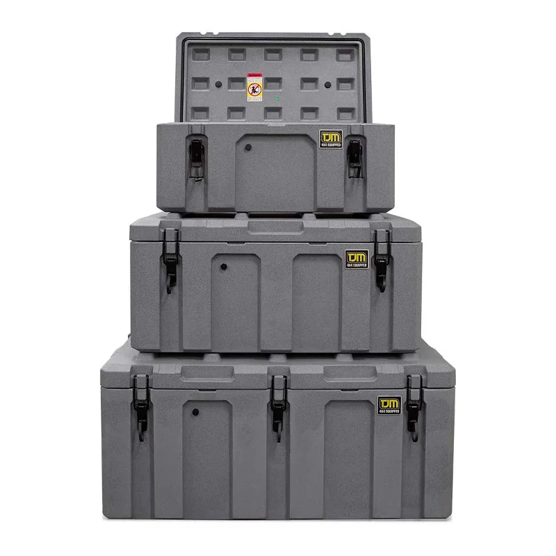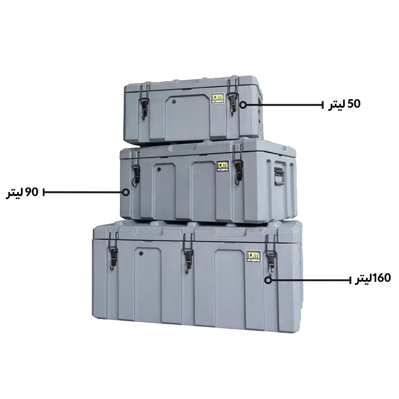باکس TJM در سه سایز متفاوت طراحی شده تا نیازهای مختلف کاربران را پوشش دهد. سایز کوچک با حجم 50 لیتر، مناسب حمل وسایل سبک و کوچک است. سایز متوسط با 90 لیتر فضای کافی برای تجهیزات کمپینگ دو نفره یا لوازم ضروری خودرو ارائه میدهد. سایز بزرگ 160 لیتر امکان نگهداری حجم زیاد وسایل سنگینتر مانند چادر، کیسه خواب یا تجهیزات حرفهای را فراهم میکند. این تنوع سایز باعث میشود هر کاربر بسته به نیاز خود، فضای بار منظم و ایمن داشته باشد و از بهمریختگی و آسیب دیدن لوازم جلوگیری شود.