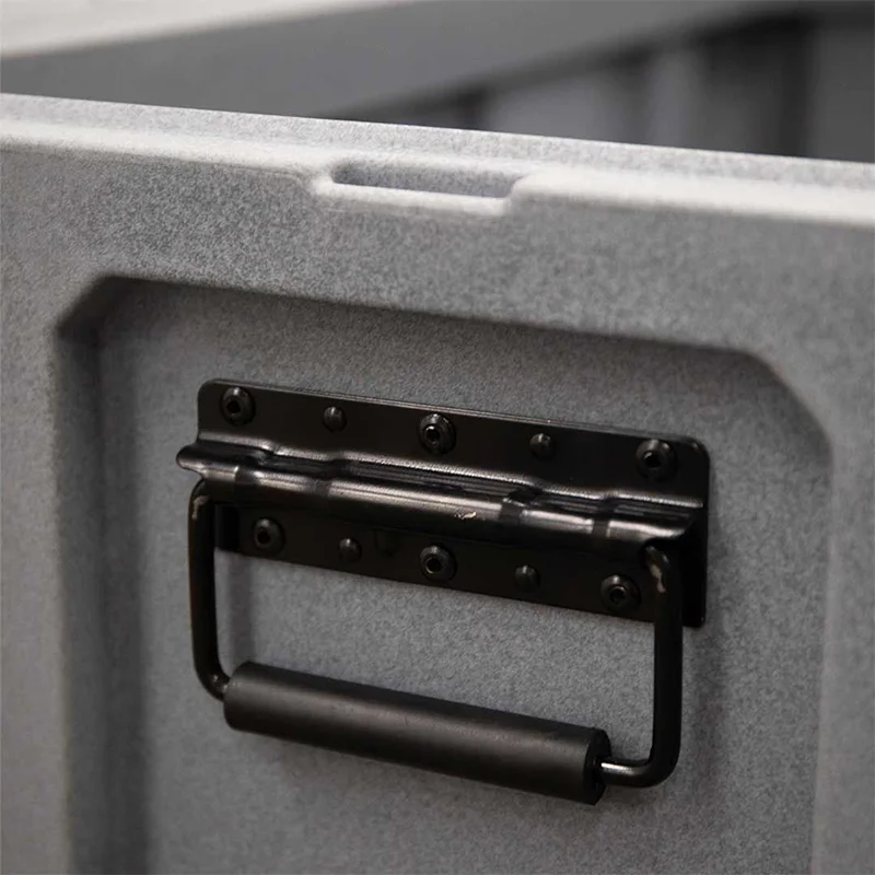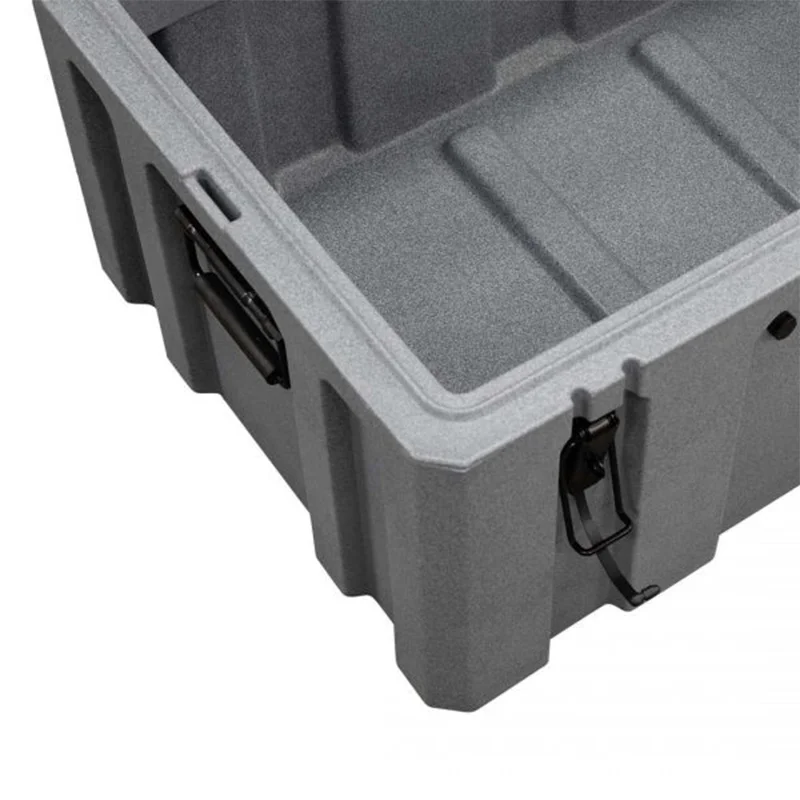 این باکس از پلیاتیلن مقاوم (LLDPE) ساخته شده که در برابر ضربه، فشار و اشعه ماوراء بنفش مقاوم است و مناسب استفاده طولانیمدت در فضای باز و شرایط سخت جادهای است. چفتهای فولادی توکار با قابلیت قفل شدن، امنیت وسایل داخل باکس را تضمین میکنند و دستگیرههای توکار با روکش لاستیکی، حمل آسان و مطمئن را فراهم میسازند. لولاهای فولادی ضدزنگ دوام محصول را افزایش میدهند و شیارهای جلو و کناری برای نصب تسمه تا عرض 40 میلیمتر، امکان فیکس کردن باکس در خودرو را فراهم میکنند. رنگ طوسی و طراحی حرفهای باعث هماهنگی با فضای داخلی و خارجی خودروهای SUV و آفرودی میشود.