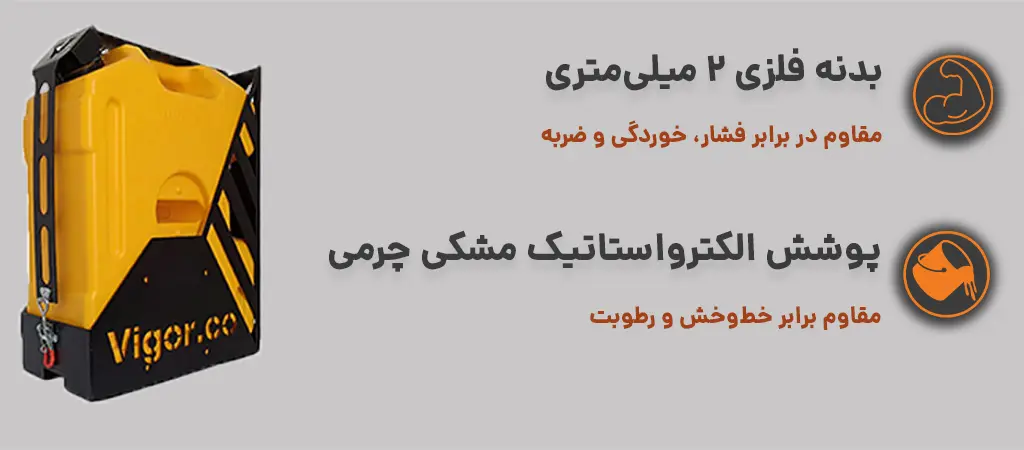 - بدنه فلزی ۲ میلیمتری مقاوم در برابر فشار، خوردگی و ضربه