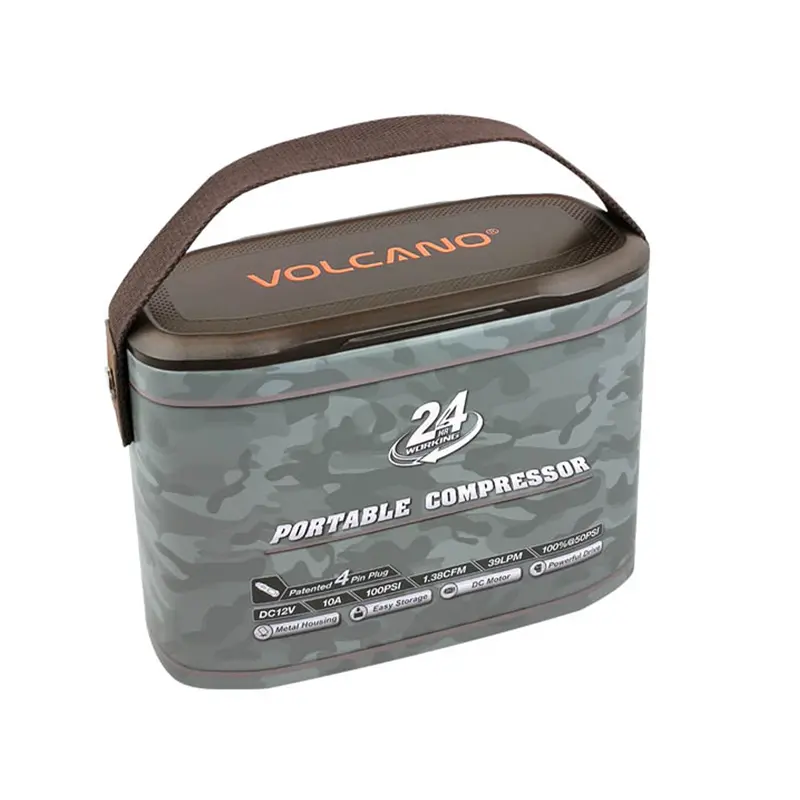 کمپرسور باد تک سیلندر قابلحمل ولکانو مدل B120 از جنس آلومینیوم آنودایز شده، دارای راندمان بالا، کارکرد نرم و در عین حال کمصدا است. در این کمپرسور باد ولکانو، این پیستون بهگونهای است که ارتعاشات را به کمترین میزان ممکن رسانده و کارکرد یکنواخت و آرامی را برای پمپ باد به ارمغان آورده است و بههنگام کارکرد، کمترین لرزش ممکن را خواهد داشت. توان و راندمان هوای خروجی این کمپرسور باد بهنحوی است که علاوه بر باد کردن لاستیک، با اتصال کمپرسور به مجموعههای مرتبط میتوان برای راهاندازی سیستمهای کمکفنر، قفلهای دیفرانسیل و انواع ابزارهای بادی از آن استفاده کرد. همچنین میتوانید کیسههای هوا، چادرها و تشکهای خواب را بهراحتی با این کمپرسور تک پیستون باد کنید.