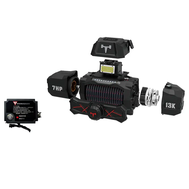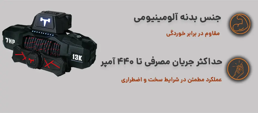 بدنه آلومینیومی این وینچ فقط برای کاهش وزن نیست؛ بلکه مقاومت بالا در برابر خوردگی، رطوبت و تغییرات دمایی را تضمین میکند. استاندارد IP68 به این معناست که وینچ در برابر نفوذ کامل آب، گل، شن و گردوغبار ایمن است. در آفرود، عبور از رودخانه، باران شدید یا طوفان شن اتفاقی غیرقابل اجتناب است و تجهیزاتی که آببندی ضعیف دارند، خیلی زود از کار میافتند. وینچ 13000 تی مکس برای چنین شرایطی ساخته شده و عملکرد پایدار خود را حتی پس از قرارگیری در محیطهای بسیار خشن حفظ میکند.