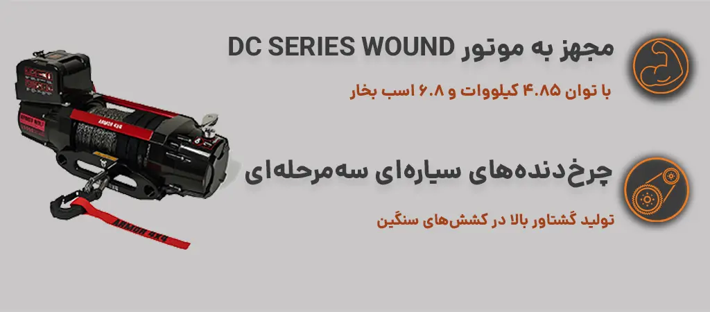 موتور DC سریووند این وینچ با توان 6.8 اسب بخار، گشتاور بالایی را در دور پایین تولید میکند که برای کششهای سنگین حیاتی است. این نوع موتور در برابر فشار مداوم عملکرد پایدارتری دارد و از افت توان ناگهانی جلوگیری میکند. نسبت دنده ۲۱۶:۱ باعث میشود نیروی موتور بهشکل کنترلشده به درام منتقل شود و کشش یکنواختی ایجاد گردد. این ویژگی در بازیابی خودرو از شن عمیق یا گل چسبنده، نقش تعیینکنندهای دارد.