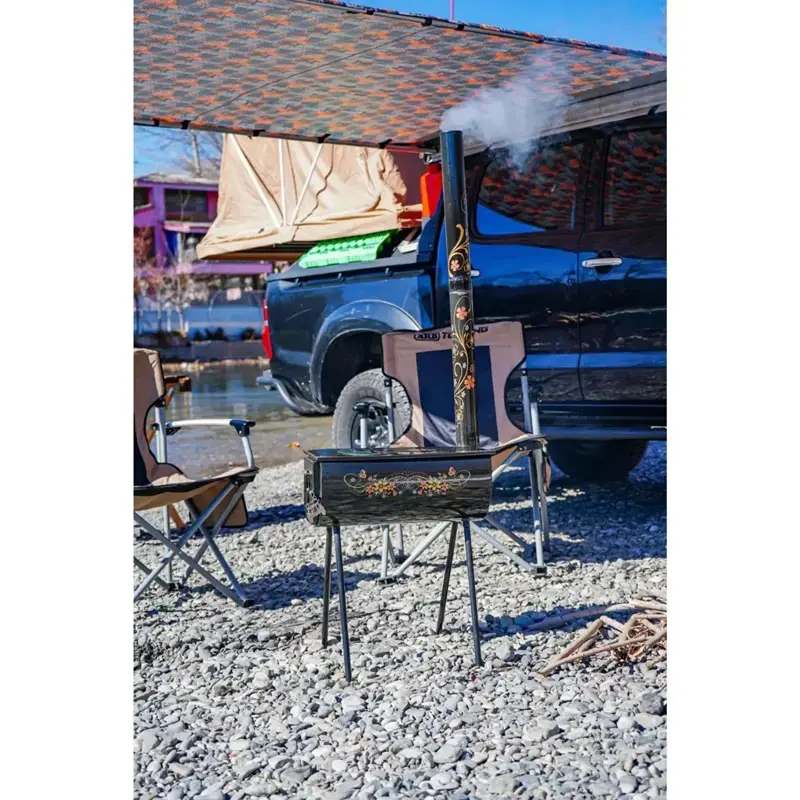 برای برداشتن و حمل محفظه بخاری، دو دستگیره در کنارههای آن قرار دارد. همچنین جهت نگهداری، جابهجایی یا گذاشتن در وسیله نقلیه در طول سفر، یک عدد کیف زیپدار برزنتی محکم بههمراه محصول ارائه میشود که میتوانید پایهها و دودکش را از هم جدا کرده و با بقیه قطعات در این کاور مقاوم قرار دهید.